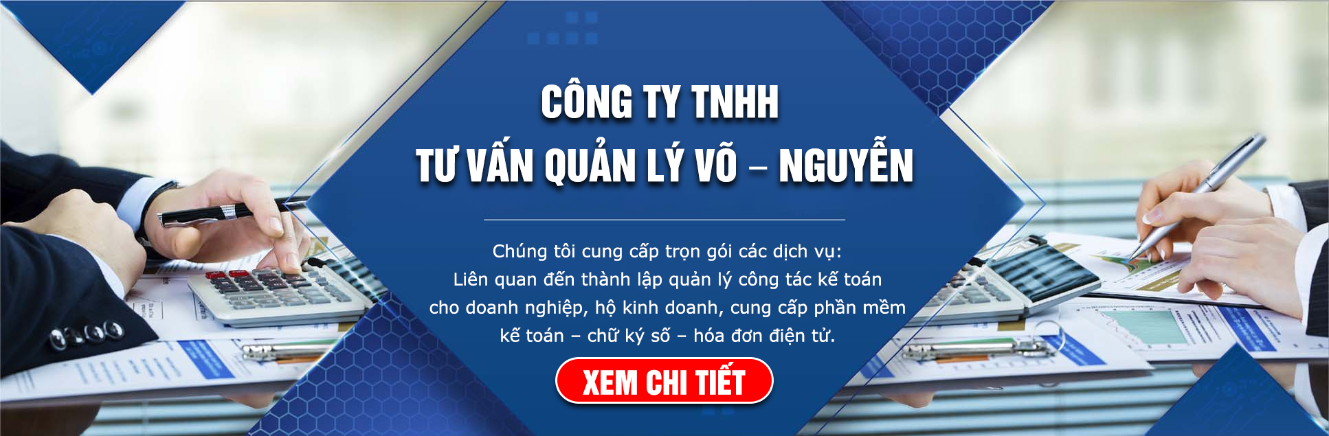 Công Ty TNHH Tư vấn Quản Lý Võ – Nguyễn. Tự hào là đơn vị uy tín hàng đầu trong lĩnh vực tư vấn về thuế và hỗ trợ gỡ rối sổ sách kế toán cho doanh nghiệp, hộ kinh doanh.
